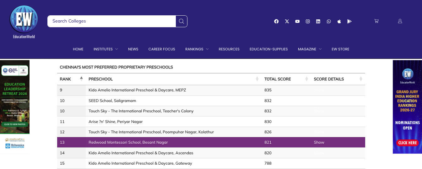 Ew India School Rankings 2021- 2022 (Top 10 Co-Ed Day Schools)
